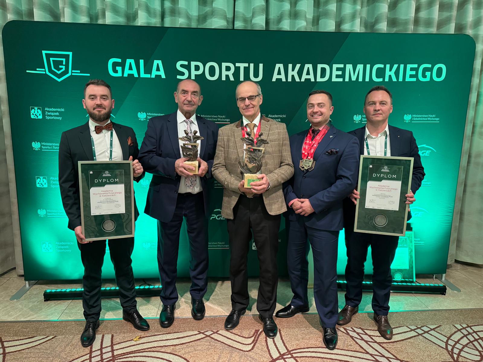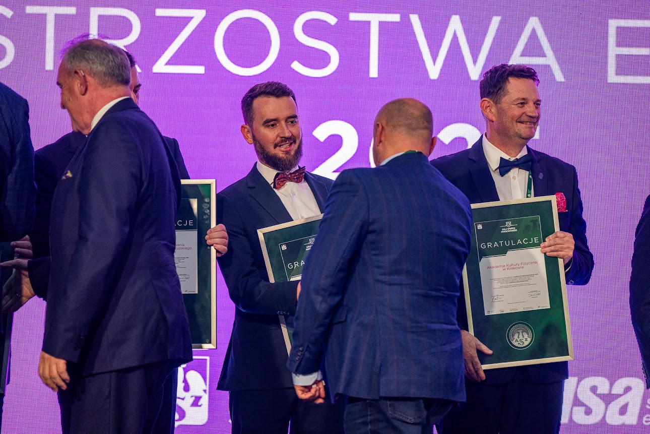 Po zakończonym Kongresie Sportu Akademickiego przyszedł czas na podsumowanie sportowych zmagań podczas Gali Sportu Akademickiego. W tym wyjątkowym wydarzeniu tradycyjnie uczestniczyli przedstawiciele #AWFKatowice – JM Rektor prof. dr hab. n. med. Andrzej Małecki, Prorektor ds. Sportu oraz Prezes AZS AWF Katowice prof. dr hab. Adam Zając, Kanclerz Piotr Rodak, a także Wiceprezesi naszego uczelnianego klubu – Karol Bar oraz dr Michał Skóra.